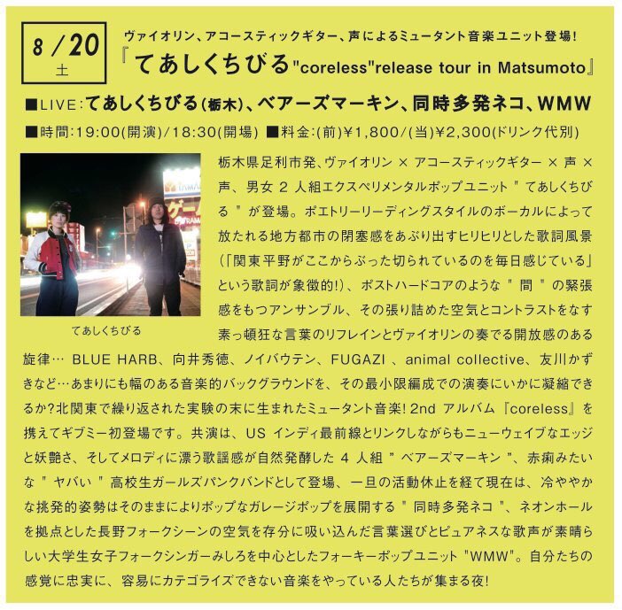 toddle 『 Vacantly 』 レコ発ツアー 松本編